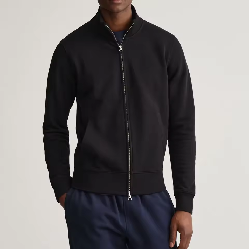 Embroidered Sweatshirts Men Full Zip Jacket Manufacturer 100% Cotton Fleece Hoodies No Hood Exporter