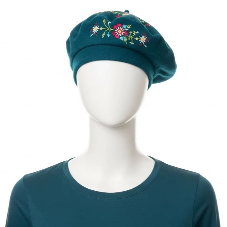 Embroidered Women's Spring Quick Dry Pullover Polyester Spandex Beret Hat