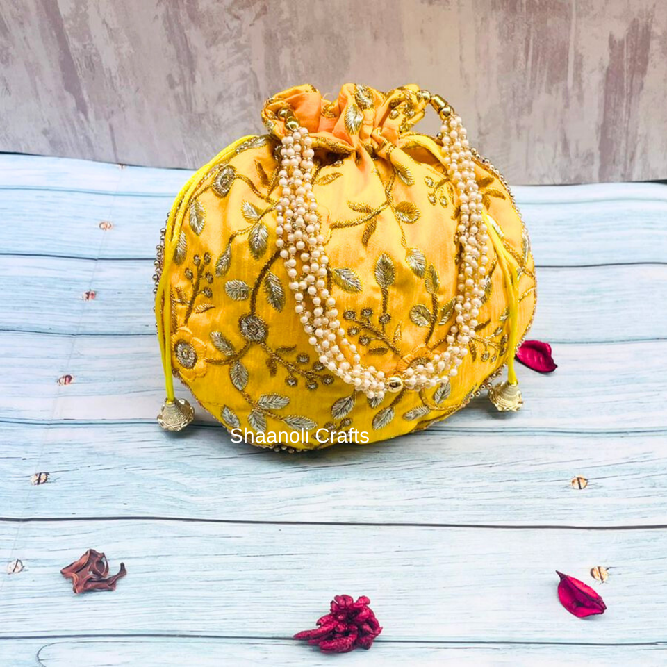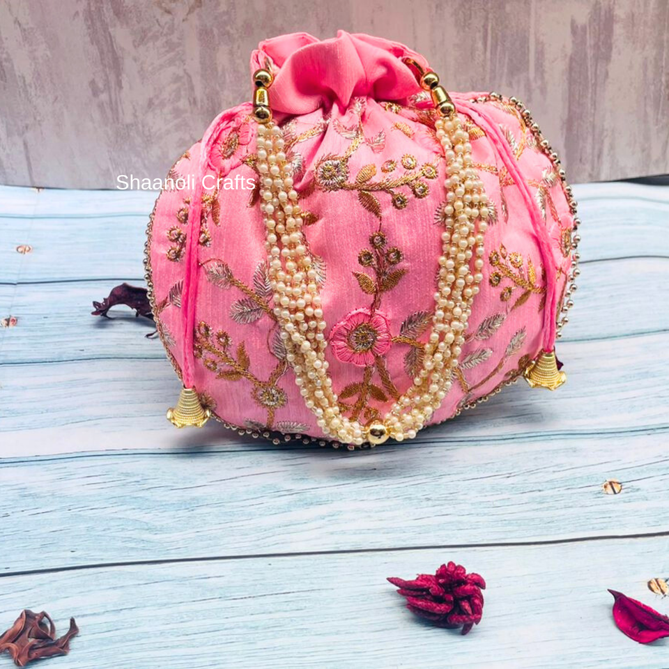 Embroidered Zari Work Wrist Handbag for Wedding Potli Bag Return Gifts for Women's Ethnic Thread Embroidered Women Hand Bags