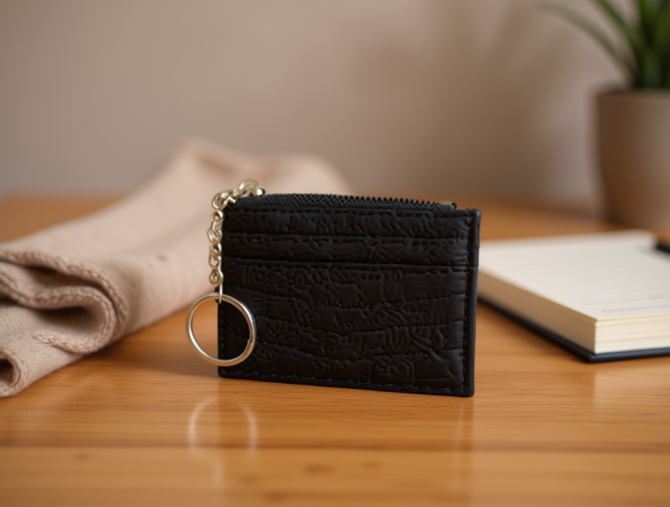 Embroidered Zipper Card Holder 3 In PU Leather Minimalist Design For Holding Cards