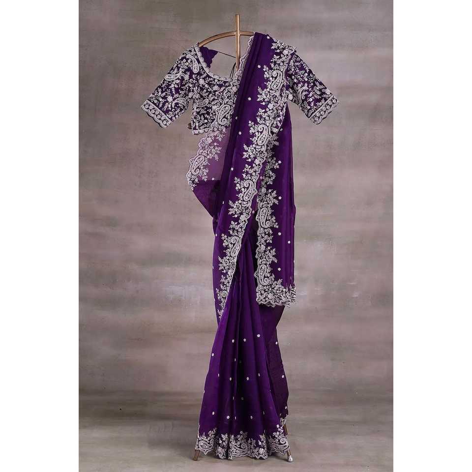 Embroidered and Sequins Work Party Wear Saree Indian & Pakistani Clothing