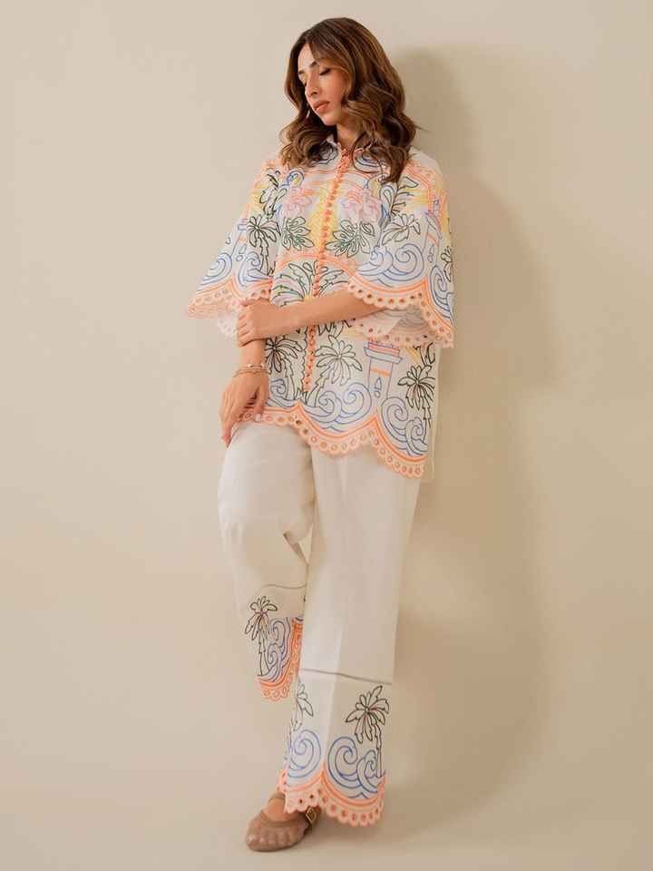 Women's Casual Woven Embroidered Chiffon 2-Piece Co-ord Set 100% Cotton Sleeveless Short Top Solid Pattern Abaya