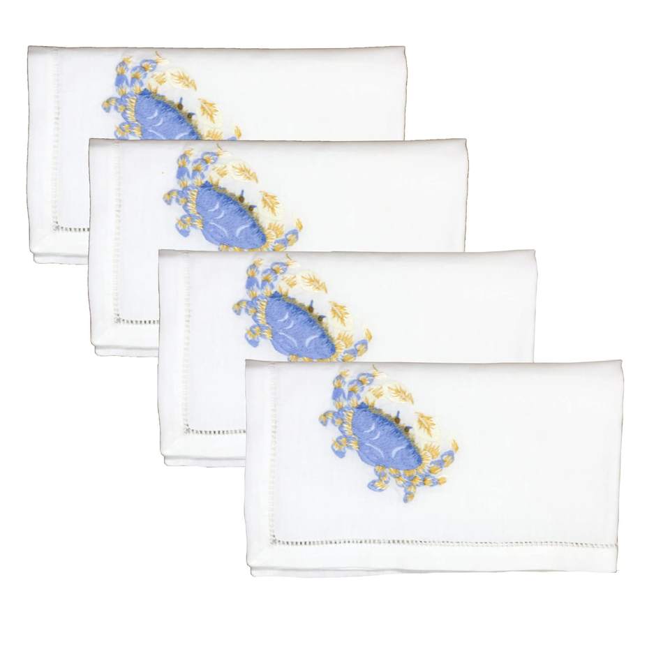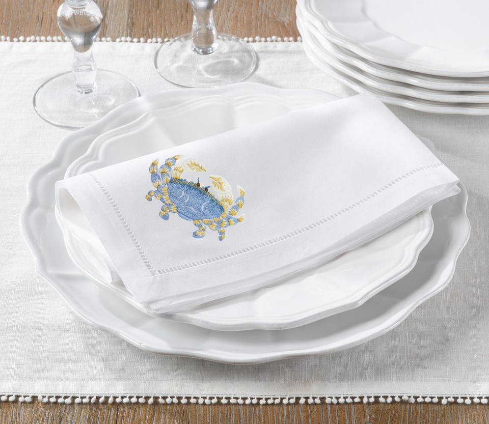 Embroidery Crab Table Napkin High Quality 100% Cotton Cloth Napkin Hemstitch Dinner Napkin for Home, Hotel, Restaurant