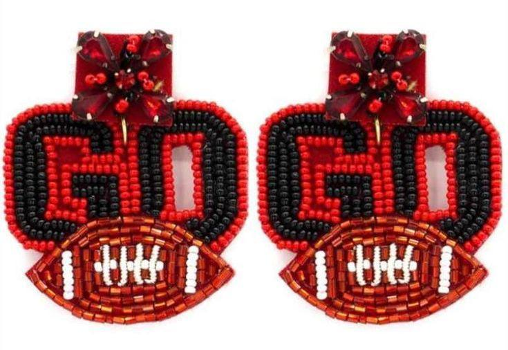 Embroidery Earrings Long GO Seed Bead Rhinestone Trendy Star Pattern New College Football Wedding Gift Ideas by MD HANDICRAFTS