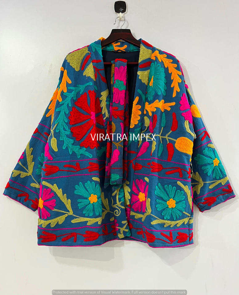 Embroidery Kimono Robe Boho Style Classic Elegant 100% Best Quality Suzani Hand Embroidered Short Raw Edge Jacket