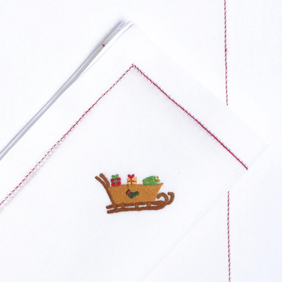 Embroidery Santa Claud and Slate Christmas Design Placemat&Napkin Set For Home Restaurant White Linen Luxury Placemat&Napkin Set