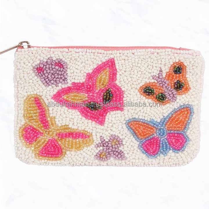 Embroidery Seed Beaded Clutch Beaded Purse Beaded Coin Purse Small Colorful Purse Coin Pouch Clutch
