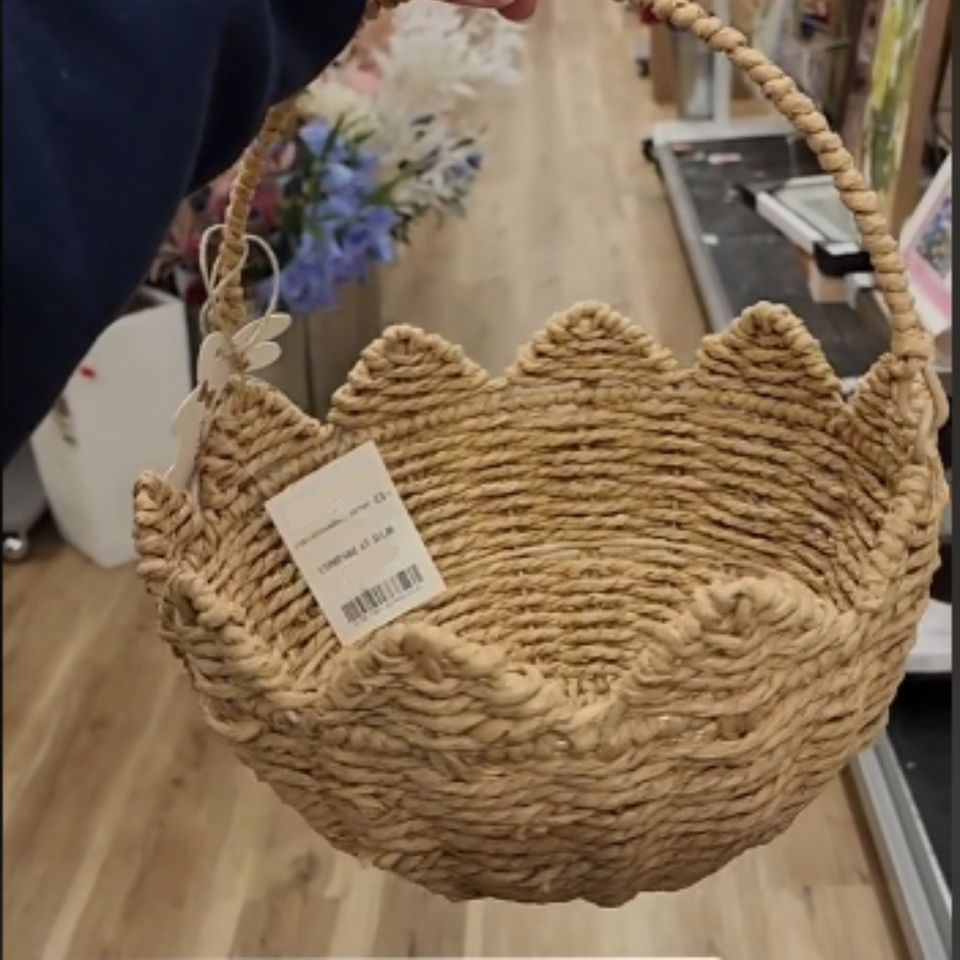 Embroidery Spring Basket with Handle Handwoven from Vietnamese Water Hyacinth Sustainable Holiday Basket for Gifting, Decoration