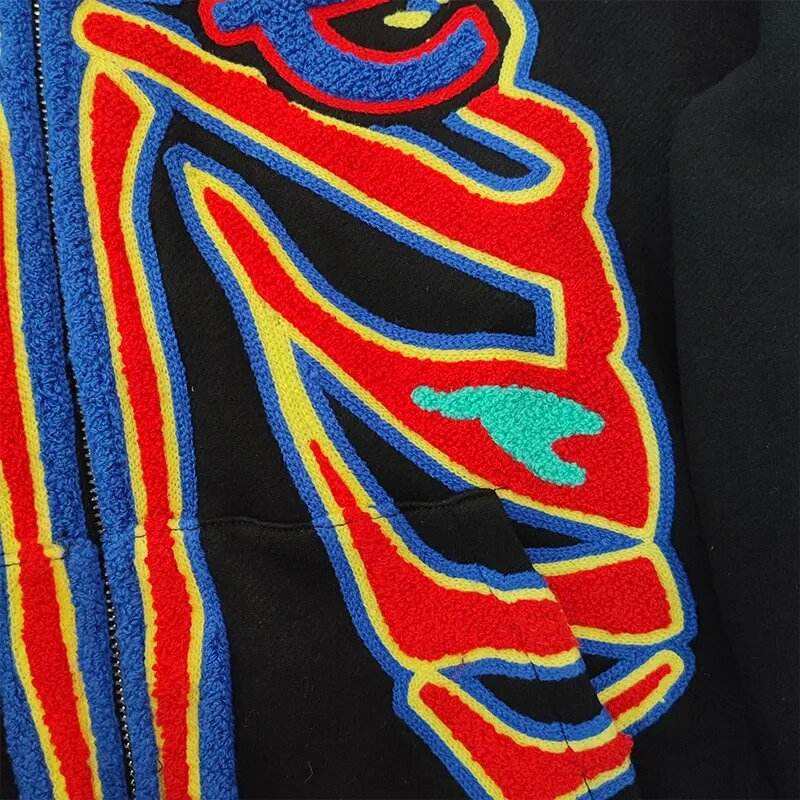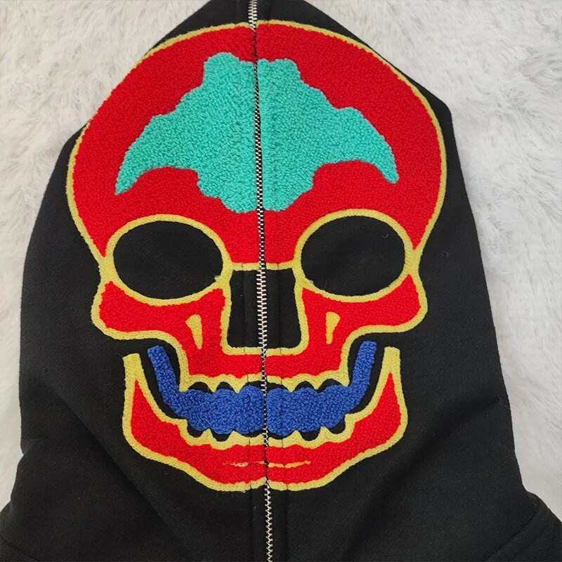 Embroidery Streetwear Y2k men's hoodie Skeleton Manufacturers Heavyweight Full Zip up Custom Hoodies men