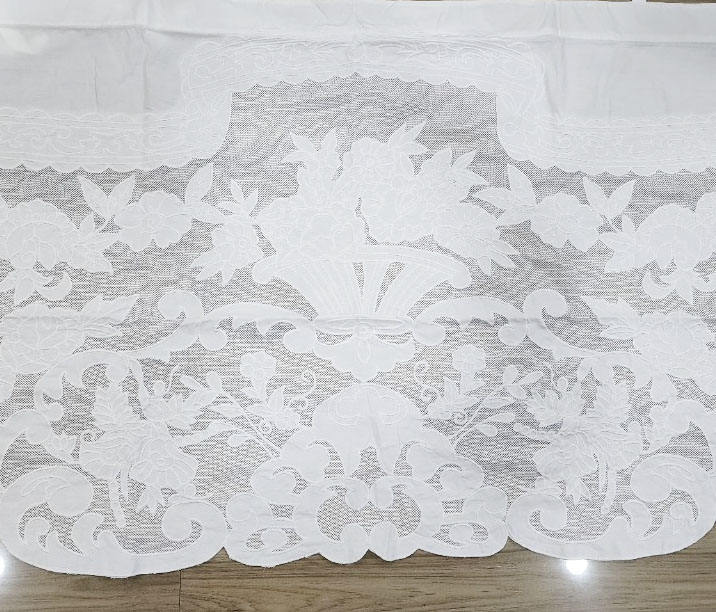 Embroidery White Flower Curtain the Best Quality White Linen Short Curtain for Home Hotel Resort Quang Thanh Embroidery