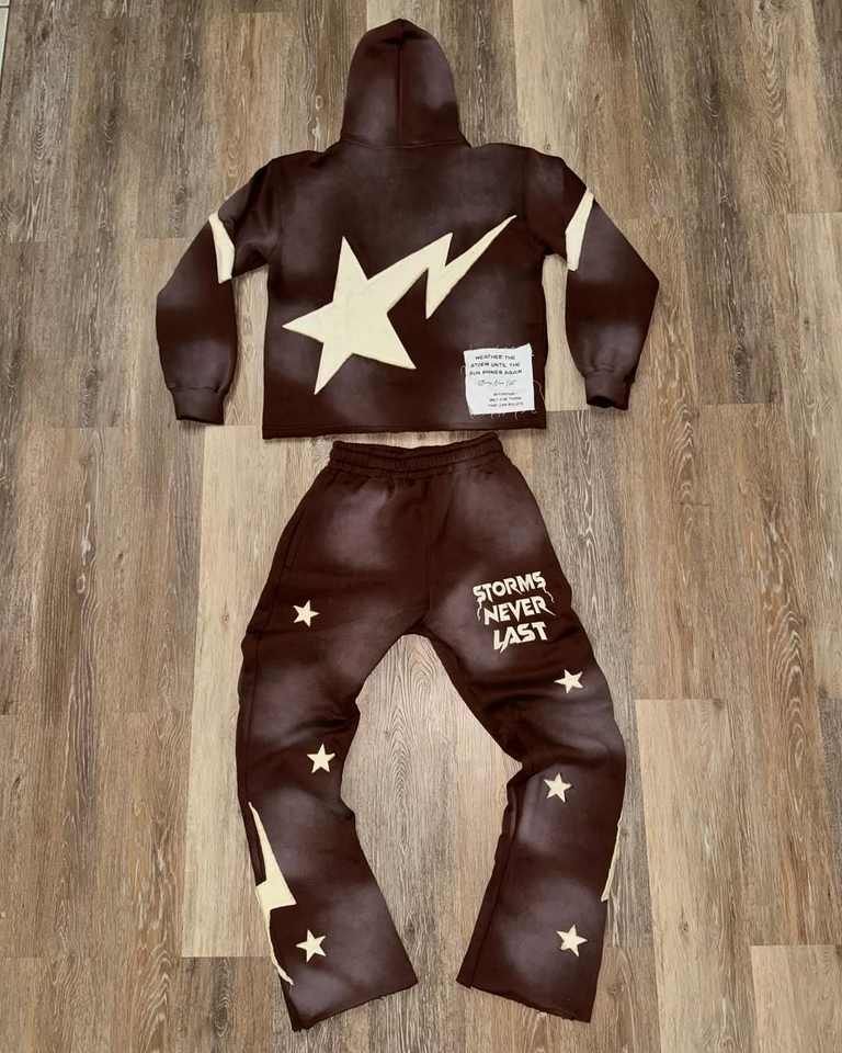Embroidery logo Custom Tracksuit Streetwear Vintage Half Zipper Acid Wash Distressed Flared Sweatpants and Hoodie Set