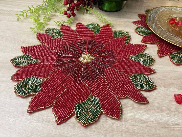 Embroidery Seed Beaded Placemat Hand-sewn Bead Kit Beadwork Pattern Set Seed Bead Stitching Kit Weaving Project From India