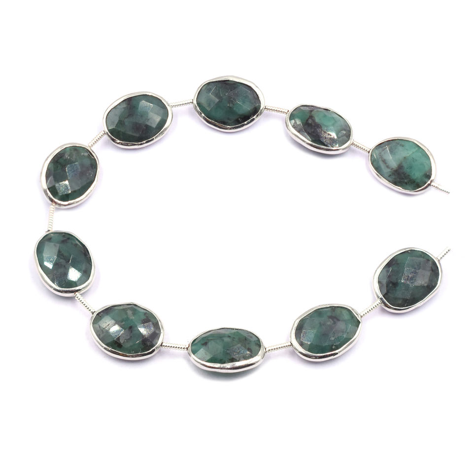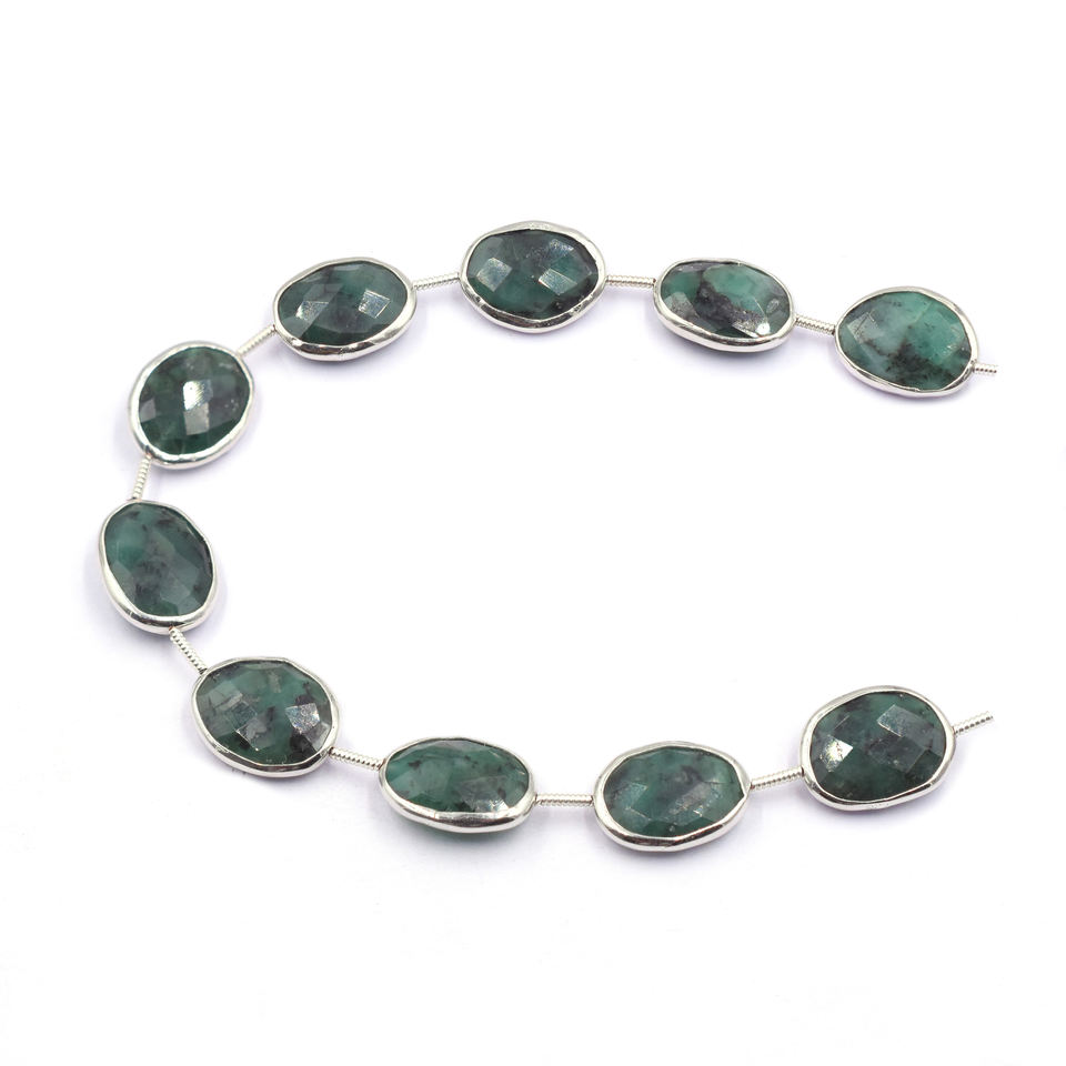 Product Name:Emerald Silver Plated Top Straight Drilled 10 Beads Strand