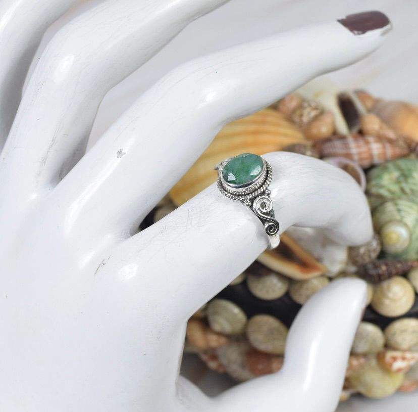Emerald 925 Sterling Silver Bezel Setting Bohemian Ring Handmade Dainty Oval Cut Gemstone Classic Wedding Anniversary Party