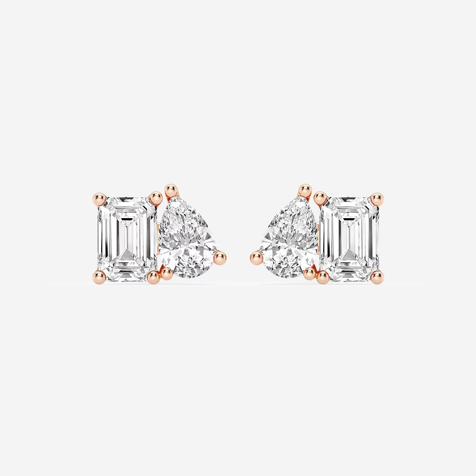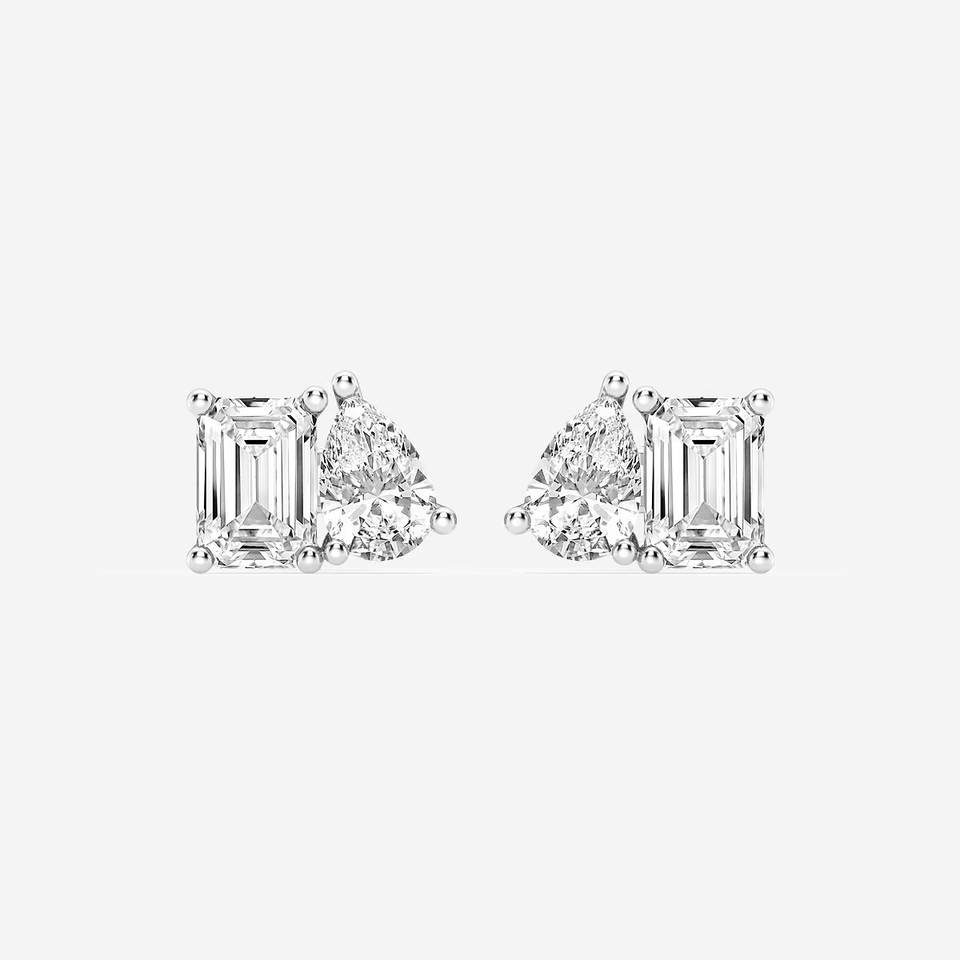 Emerald And Pear Lab Grown Diamond Stud Earrings With Brilliant Sparkle Ethical Luxury Jewelry For Women Everyday