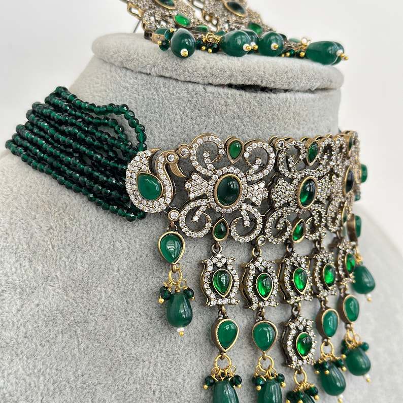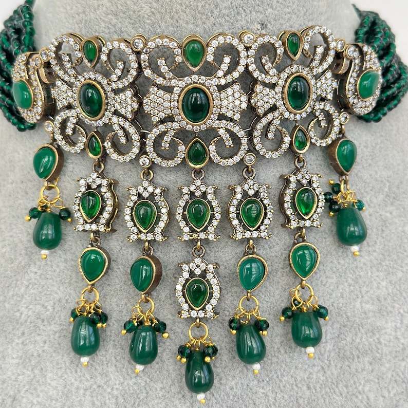 Keyword:Emerald Beads Wedding Necklace Victorian Kundan Bridal Necklace
