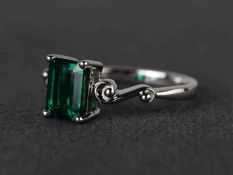 Emerald Cocktail Party Ring Green Gems Emerald Cut Gemstone Sterling Silver Ring May Birthstone Jewelry