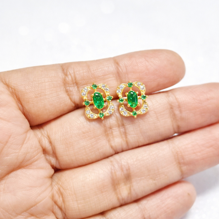 Emerald Cubic Zirconia 925 Sterling Silver Stud Handmade Gemstone Dainty Earrings For Women