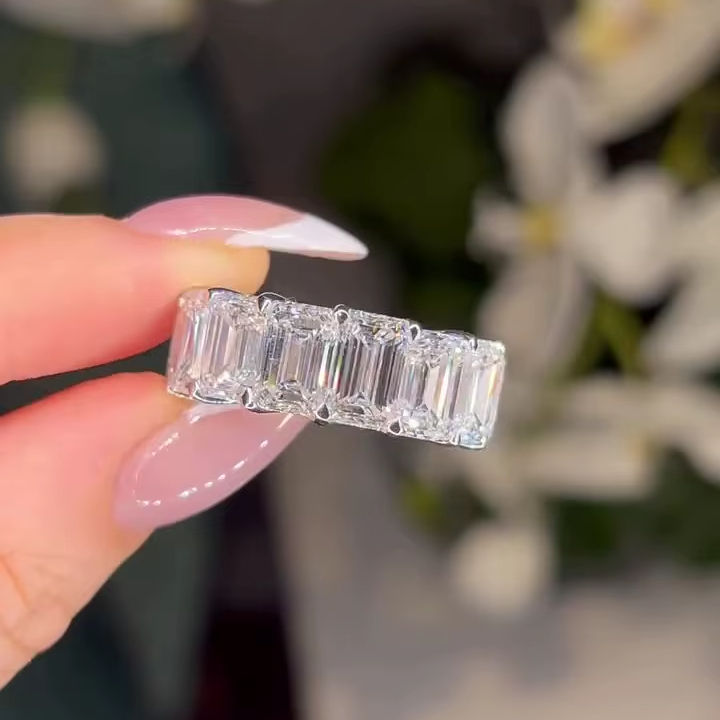 Emerald Cut CZ Full Eternity Band 5x7mm White Gold Plated Wedding Anniversary Ring Fine Jewelry Wholesale