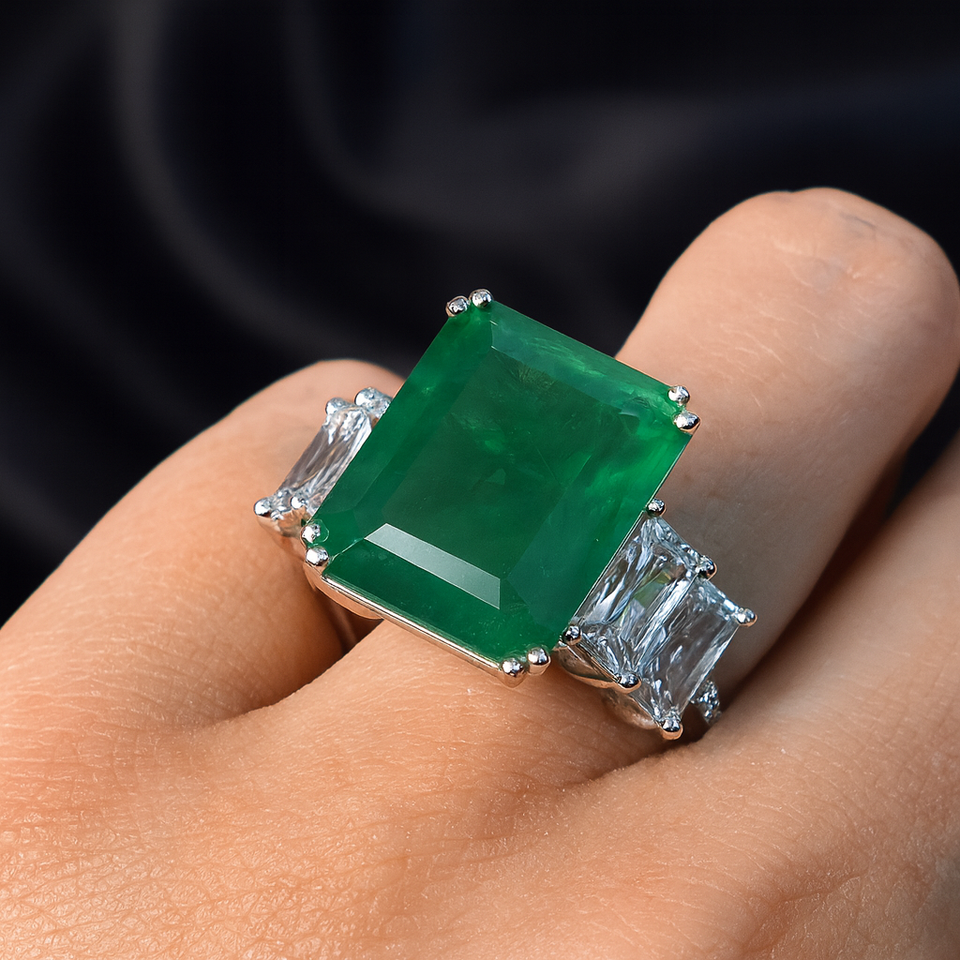 Emerald Cut Lab Created Emerald Solitaire Ring 925 Sterling Silver Minimalist Ring Statement Art Deco Christmas Gift