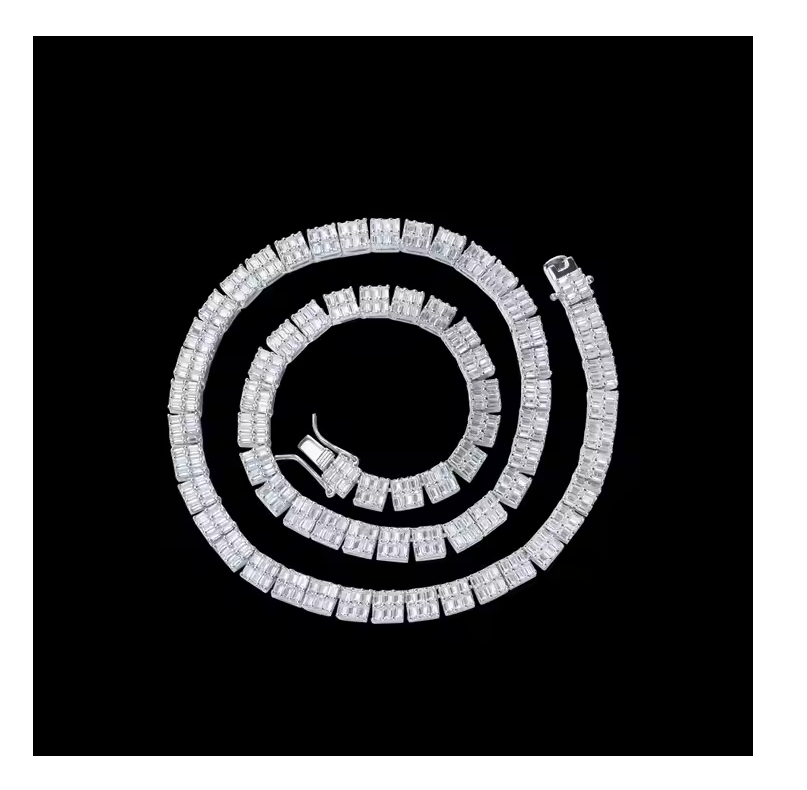 Emerald Cut Moissanite Diamond Necklace Luxury Hip Hop Jewelry High Clarity Fashionable for Men and Women