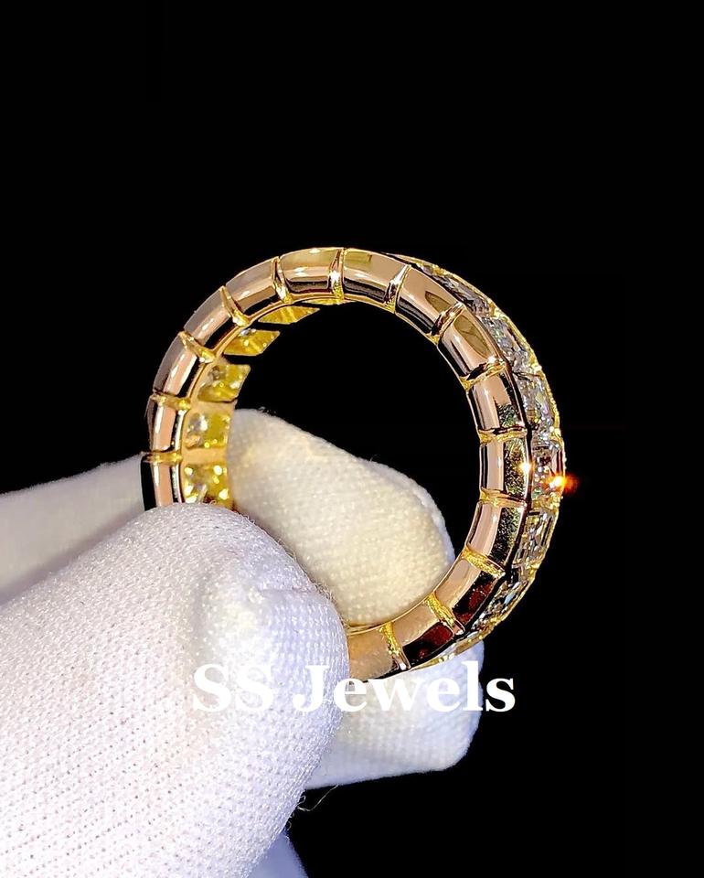 Emerald Cut Moissanite Eternity Band Ring 925 Silver Gold Plated VVS Diamond Iced Out Wedding Ring for Men & Women
