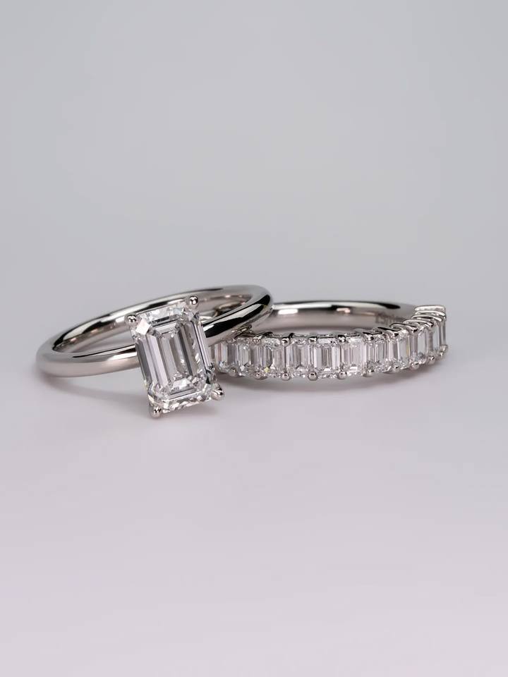 Emerald Cut Solitaire Lab Grown Diamond Engagement Ring Set Emerald Band Platinum/18K/14K/10K White Gold Fine Jewelry Wholesale