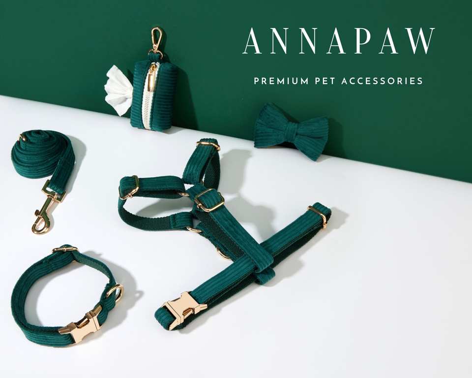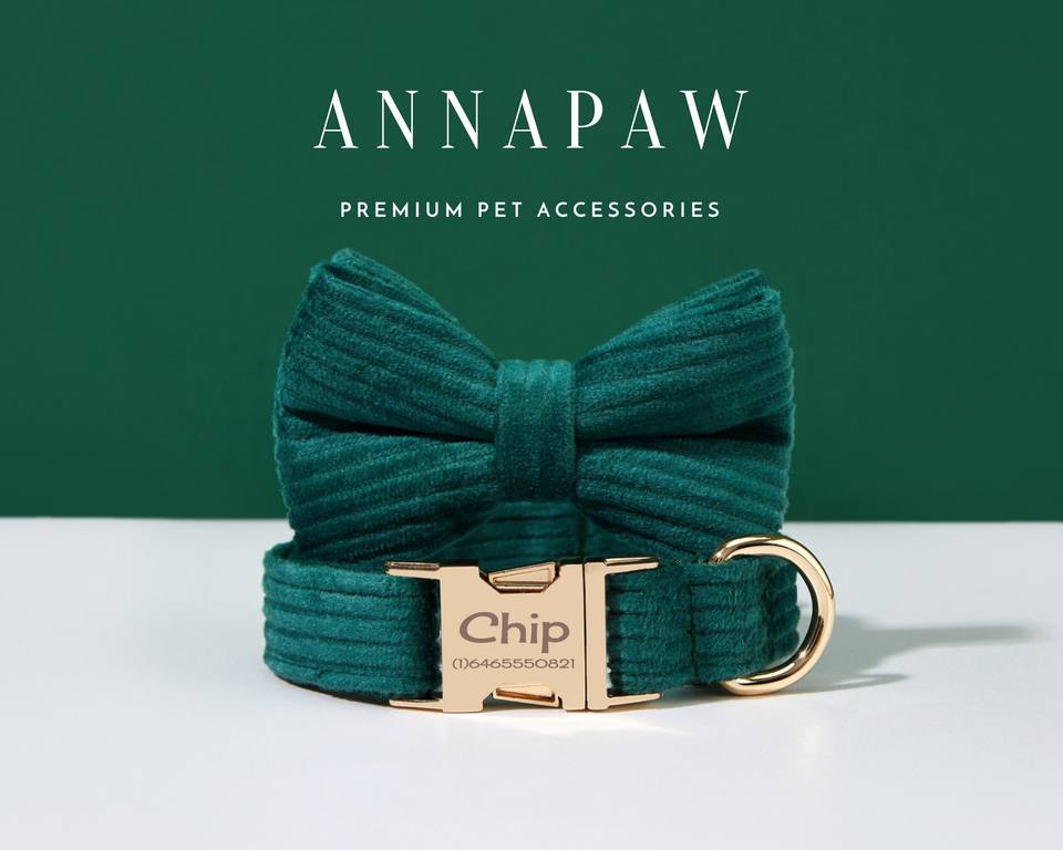 Emerald Green Corduroy Dog And Leash Set Personalised Girl With Name Engraved Soft Harness Bow Tie Collar