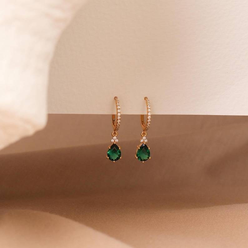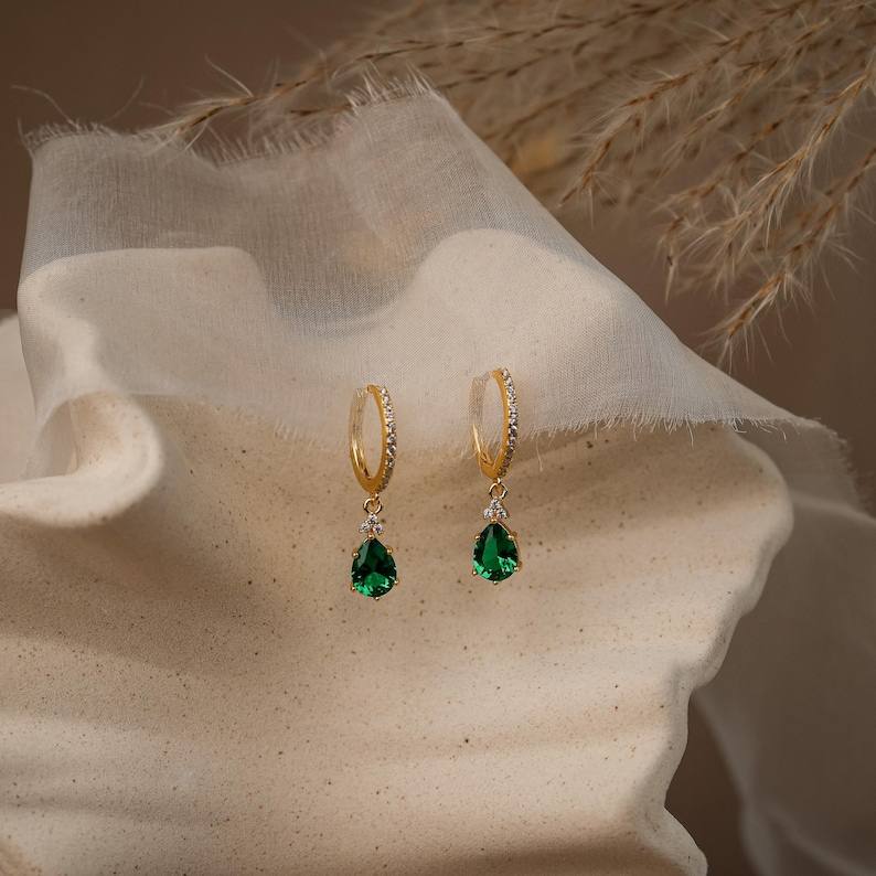 Keyword:Emerald Stud Earrings With Sparkling Emerald Stones