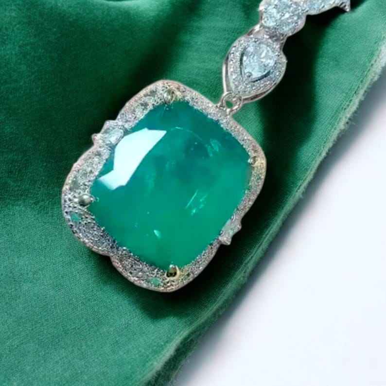 Emerald Halo Pendant Necklace High Carbon 925 Sterling Silver Tennis Chain Birthstone Art Deco Style IGI Certified 5.98 Carat