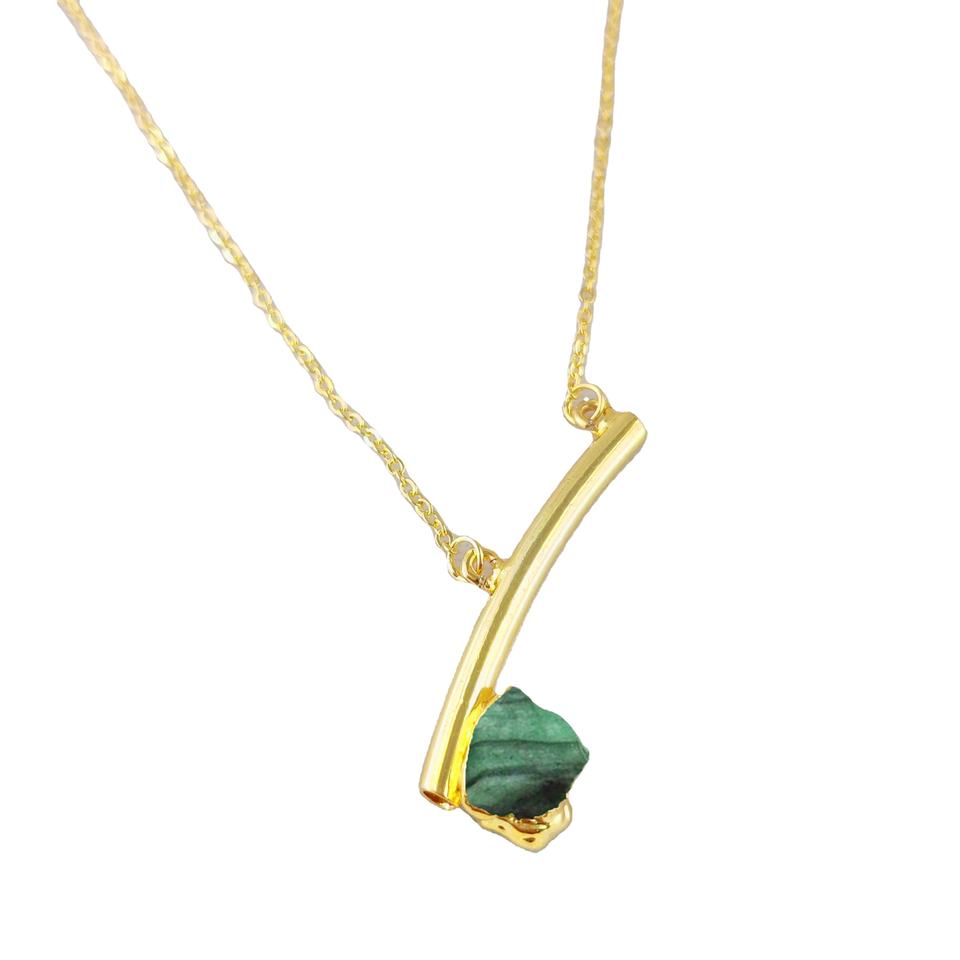 18+2inch Emerald Little Axe Shape Gemstone Necklace 925 Silver Gold Plated Edge Stainless Steel Beads Raw Birthstone Christmas