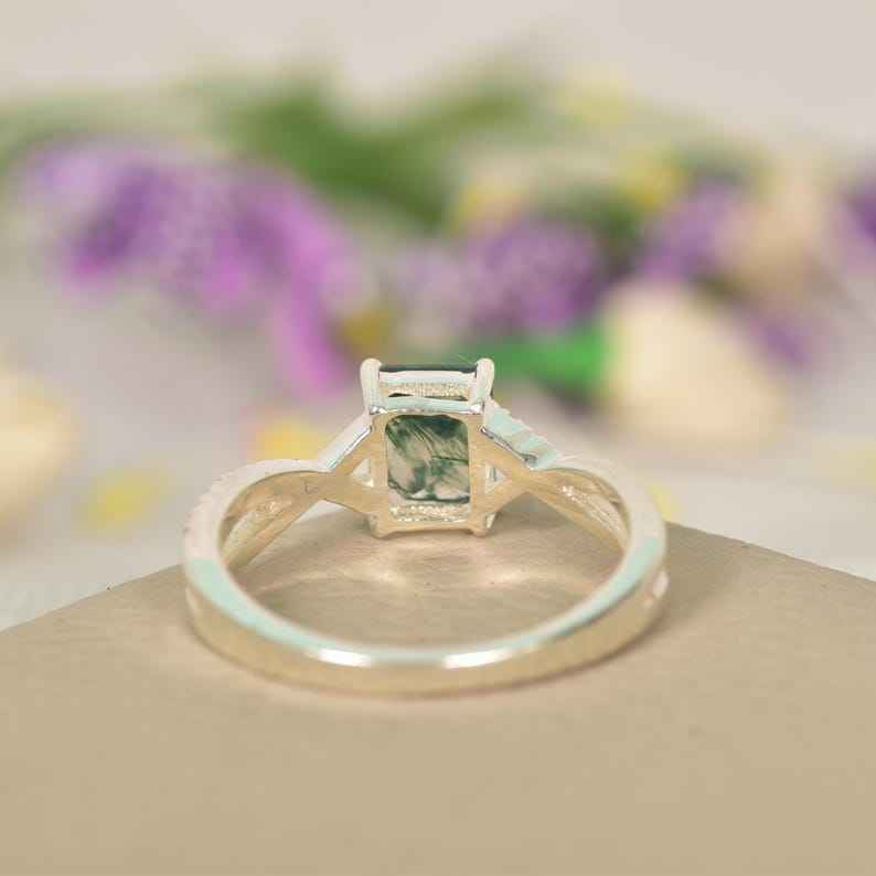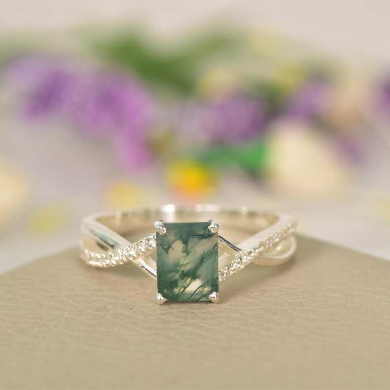 Emerald Moss Agate Solitaire Wedding Ring Delicate Promise Bridal Moissanite Engagement Eternity Infinity Twisted Ring