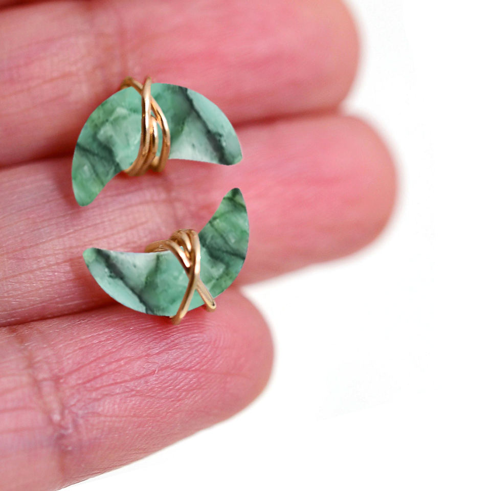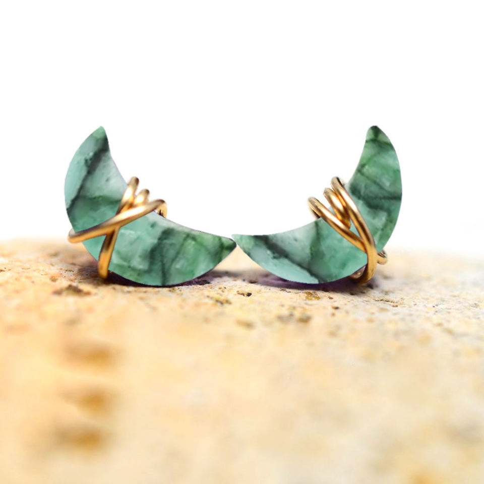 Emerald Plated Crescent Moon Shape Bohemian Minimalist Stud Earrings High Quality Brass Gold Customized Logo Wedding Party