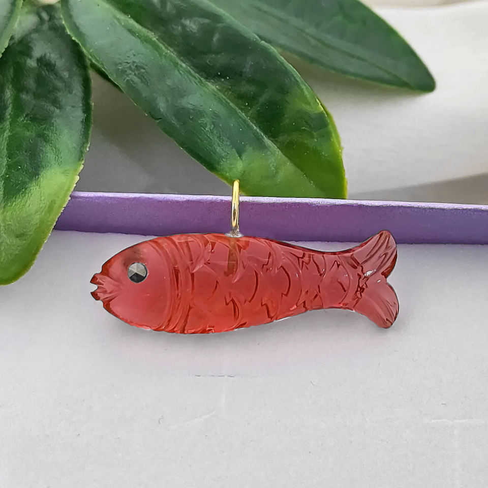 Emerald Quartz Fish Carving Pendants Emerald Quartz Fish Charms 5mm Loop Gold Plated 925 Silver Fish Charm Wholesale Suppliers