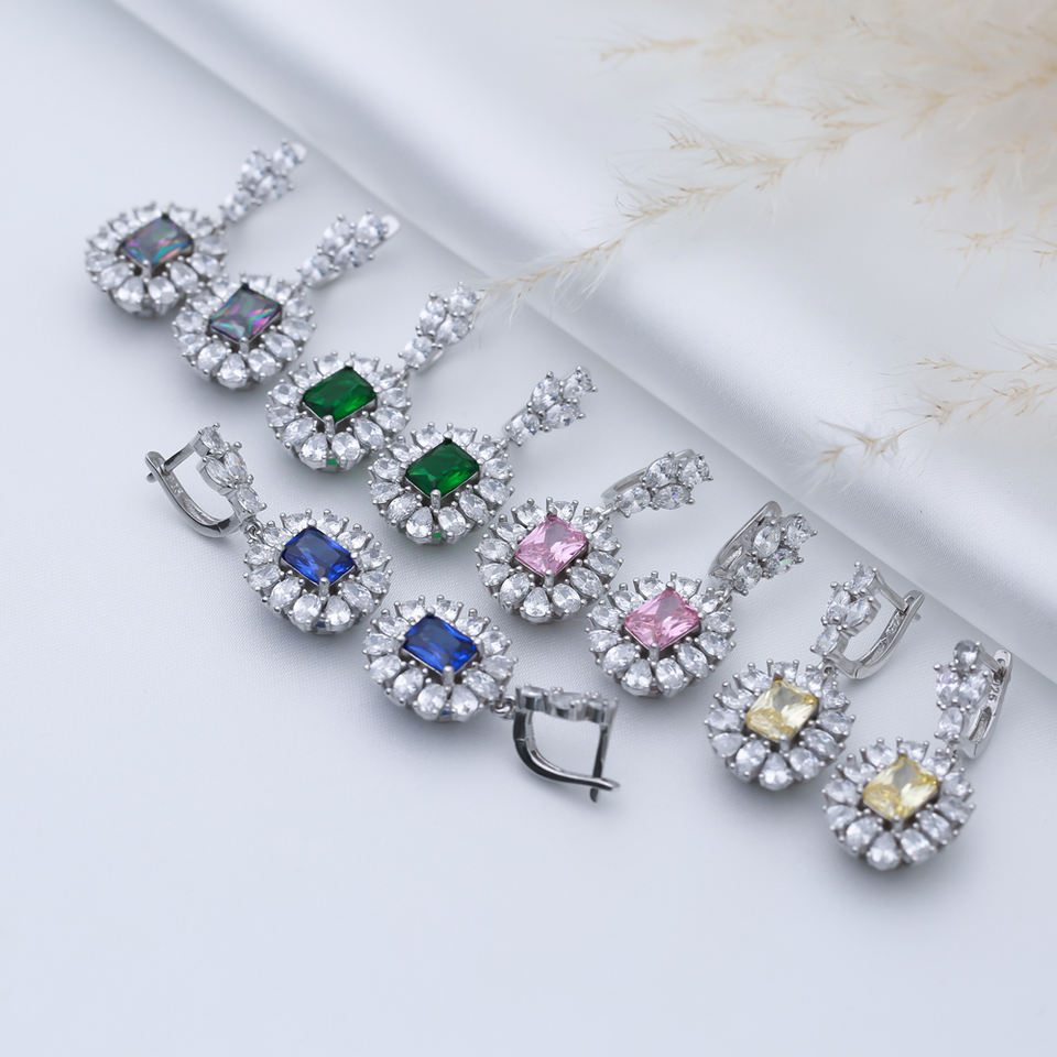 Emerald Rectangle Shape CZ Stones Turkish Handmade Wholesale 925 Silver Jewelry Dangle Earrings