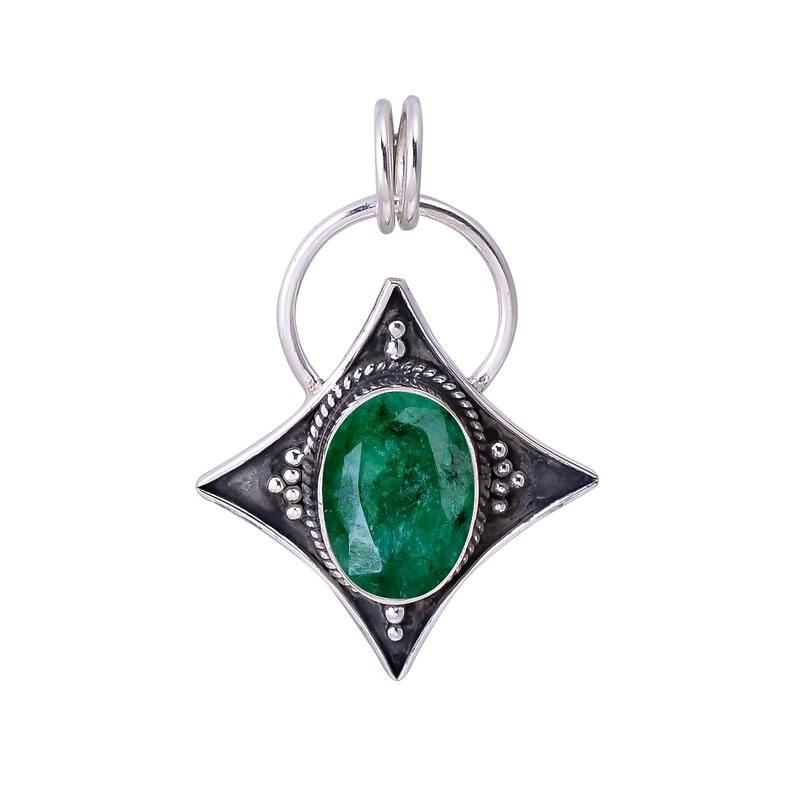 Emerald Sterling Silver Pendant Handmade Gemstone Necklace Luxury Jewelry Gift For Women Elegant Design