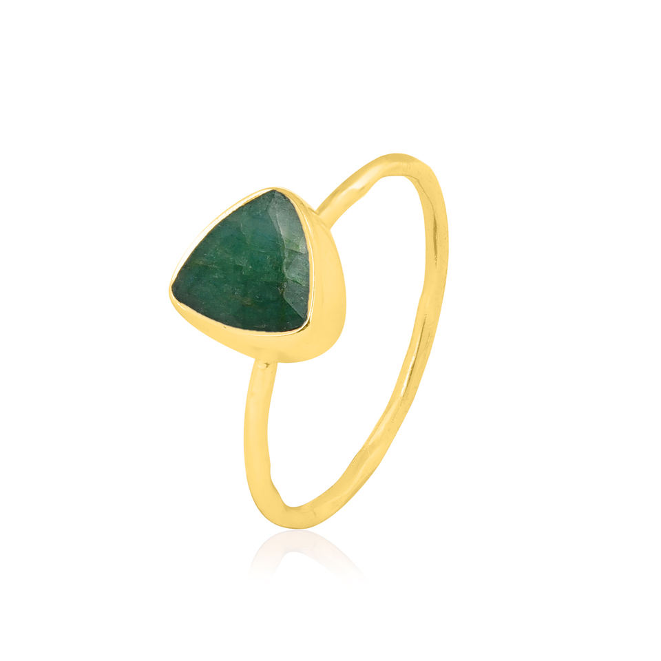 Emerald Trillion Cut Gemstone 925 Sterling Silver Gold Plated Earrings Classic Bezel Setting Fashionable Earrings For Wedding.