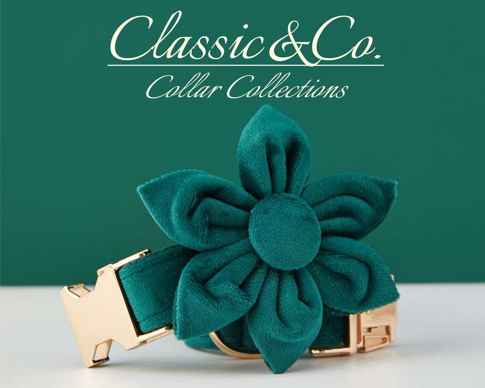 Emerald Vee Personalize Dog Collar Leash Se Wih Flower & Bow Tie For Male Female Pe,Gold Engraved Name Tag,Wedding Puppy