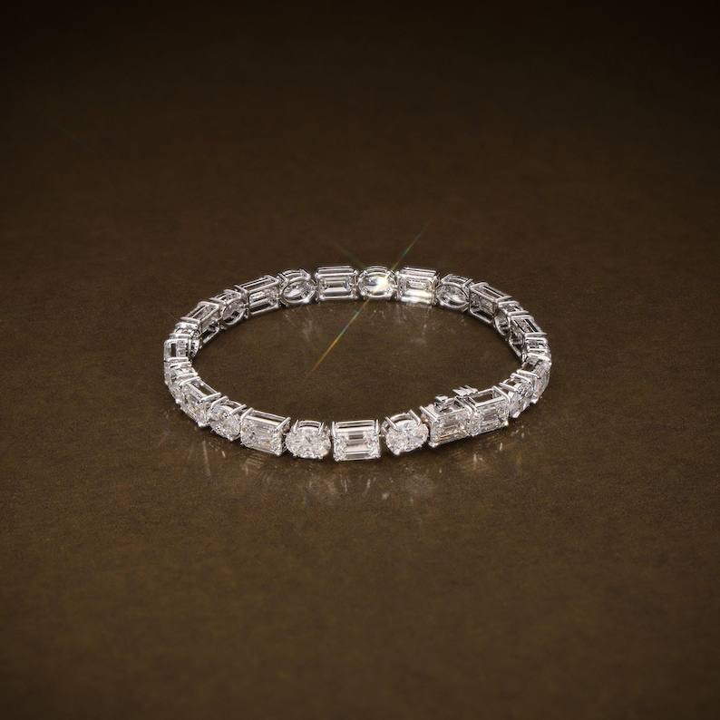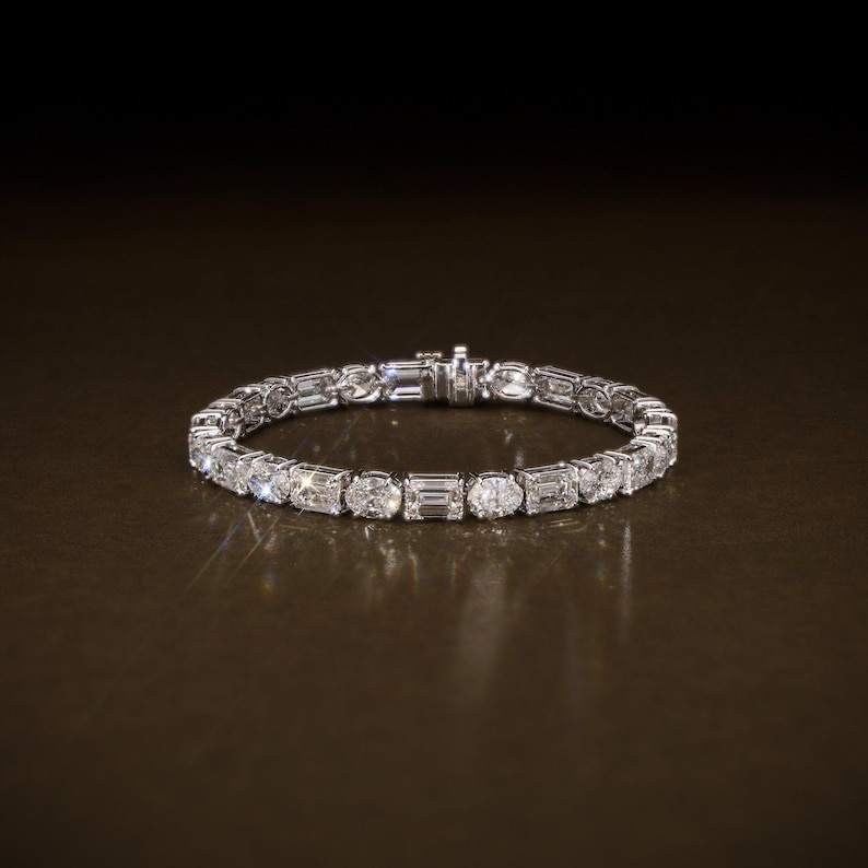 Emerald and Oval Cut Moissanite Diamond Tennis Bracelet For Womens 925 Sterling Silver Fine Jewelry Wedding Gift For Partner