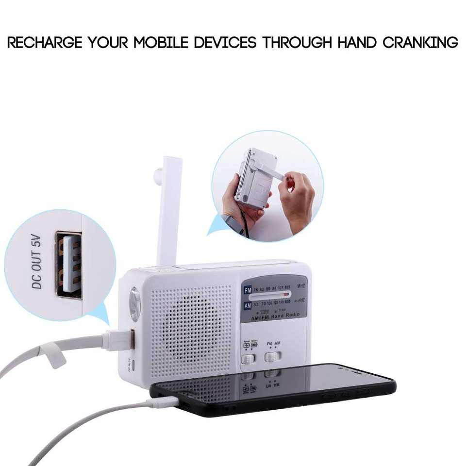Emergency Self-Powered Portable Solar Hand Crank USB Rechargeable FM/AM Radio Built-In Speaker LED Flashlight 501-1000mAh Cell