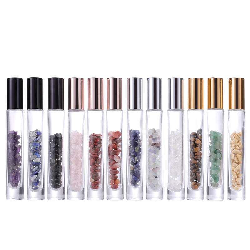 Empty 10ml Essential Oil Perfume Crystal Chips Glass Bottles Crystal Roller Oil Perfume Bottle