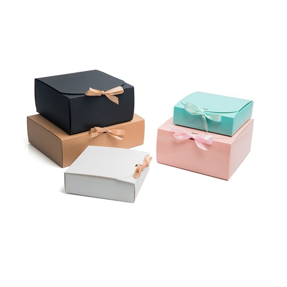 Empty Cardboard Slim Gift Box Small Practical Party Favors Gifts Box Ribbon Flip-top Kraft Paper Gift Box with Bow