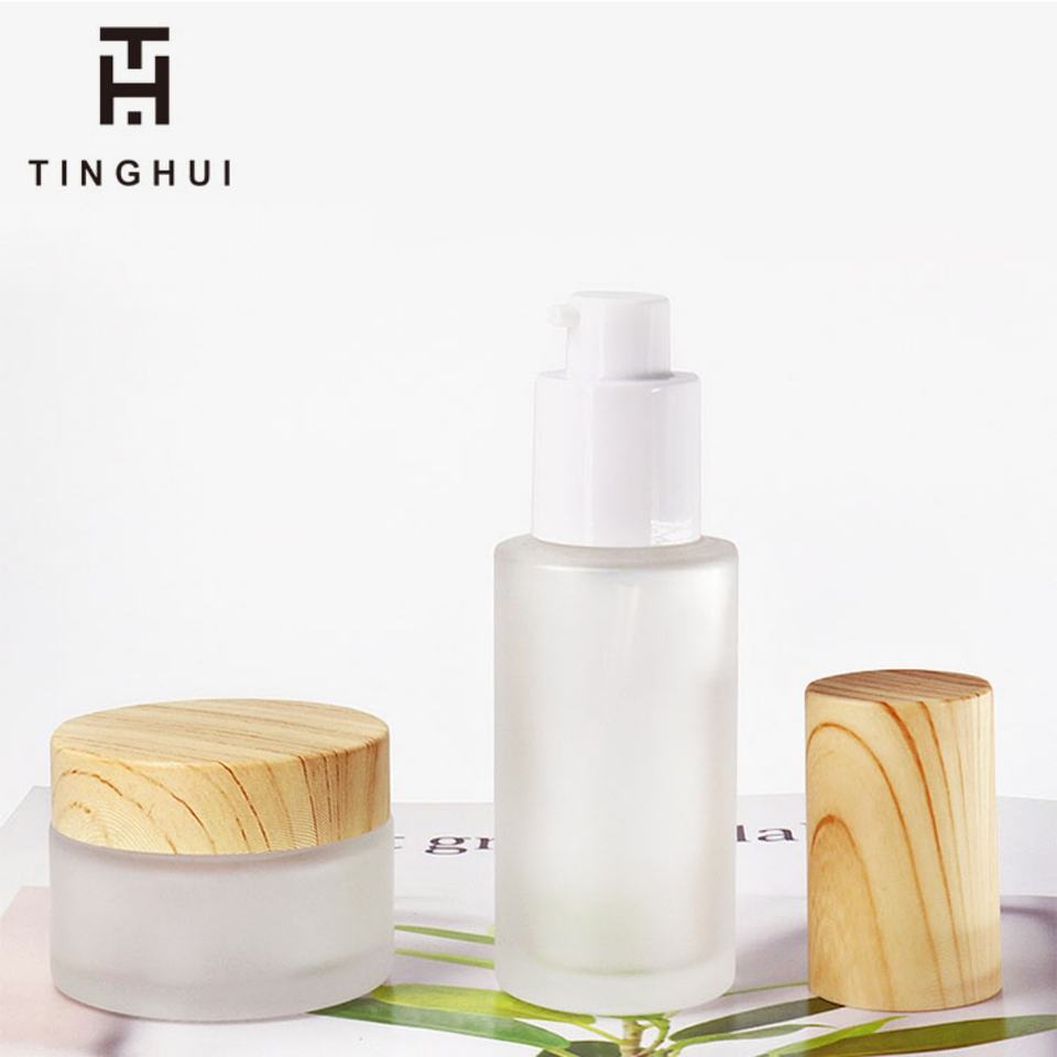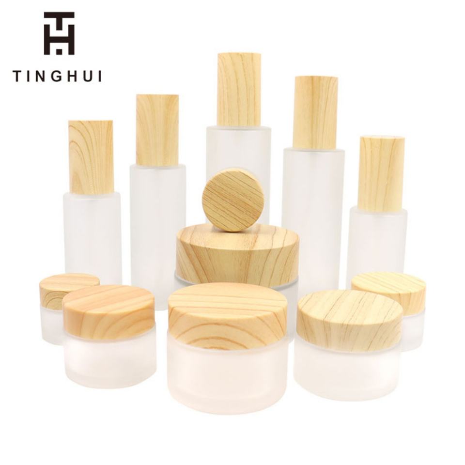 Empty Frosted Cosmetic Face Skincare Packaging Cream Glass Jar with Bamboo Lid 30ml 50ml 100ml Lotion Pump Serum Spray Bottle