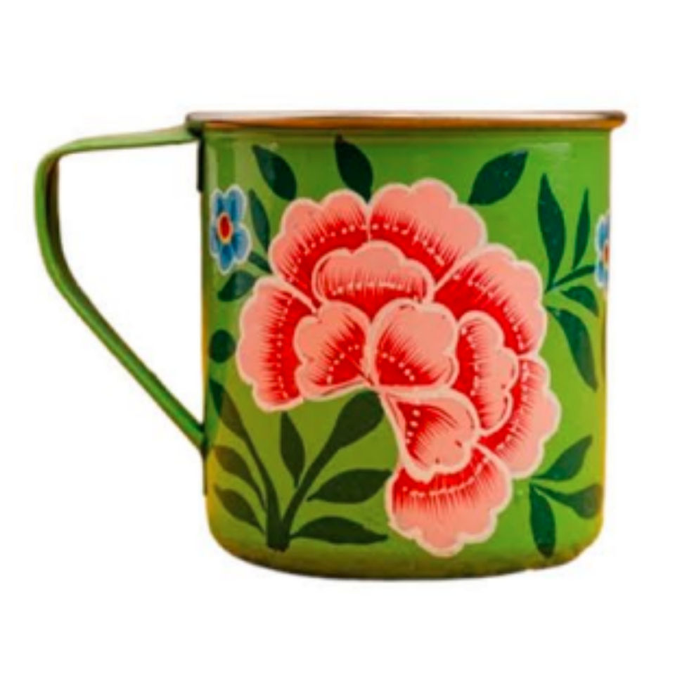 Enamel Coated Stainless Steel Mule Mug with Printed Design with Durable Enamel Finish Floral Print ,Comfortable C Handle