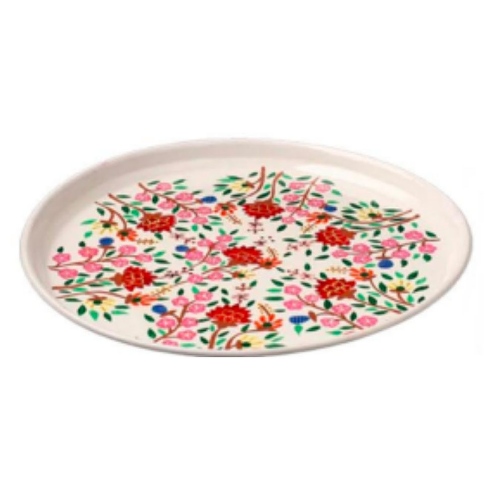 Enamel Coated Stainless Steel Printed Plate Decorative Hand Painted Floral Citrus Design Food Safe Durable
