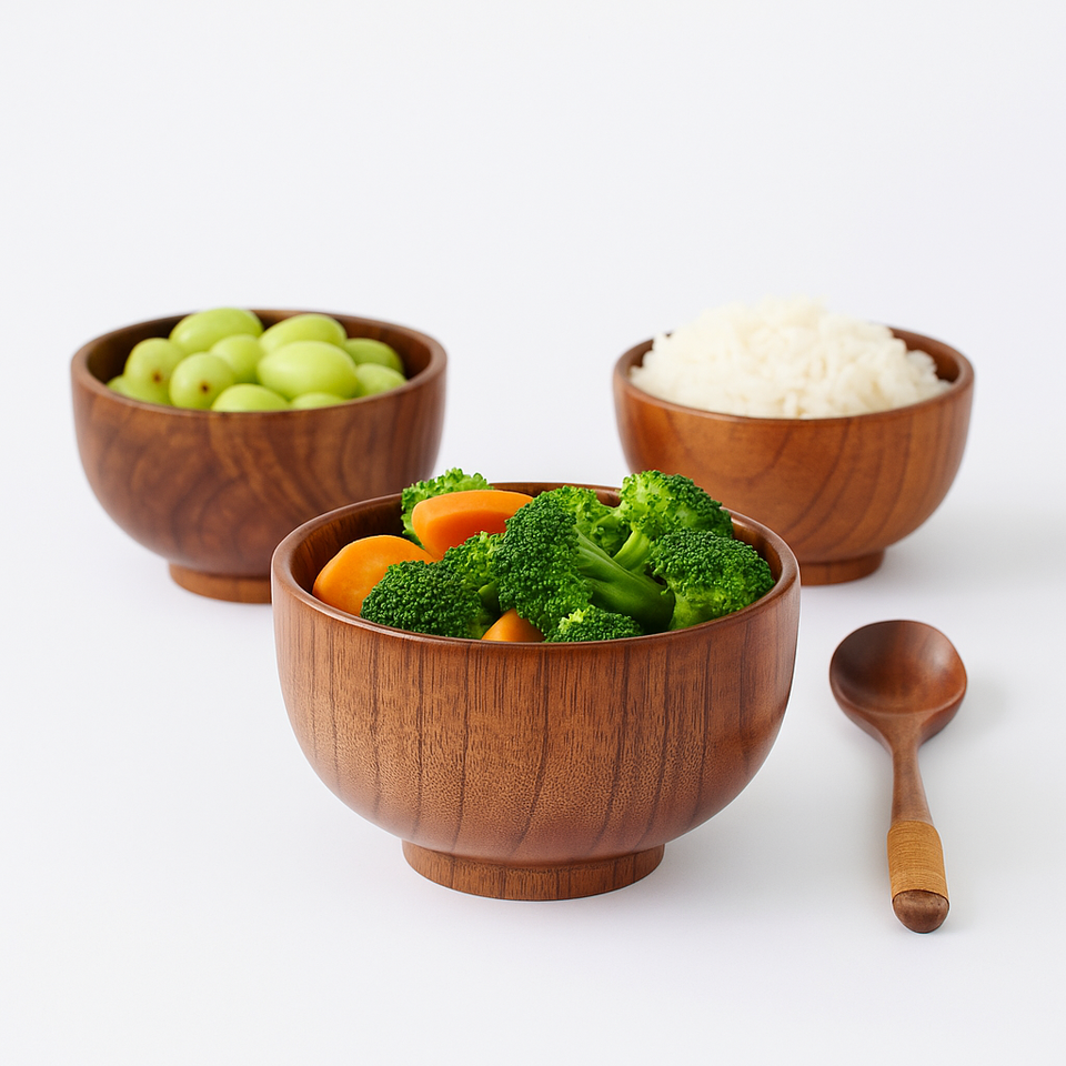 Enamel Coating Wooden Serving Bowl for Salad Fruits with Utensils, Durable and Stylish Natural Wood Tableware Accessory