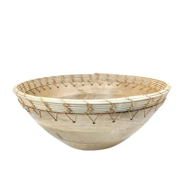 Enamel Print Acacia Wood Serving Bowl Eco-Friendly Disposable Bowl Set American Style Business Gift Home Serving Salad Home Use