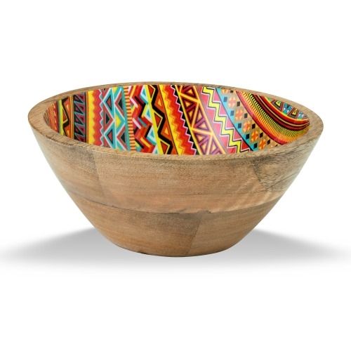 Enamel Print Mango Wooden Food Serving Bowl Manufacturer New Design Hand Printed Wooden Salad Serving Bowl