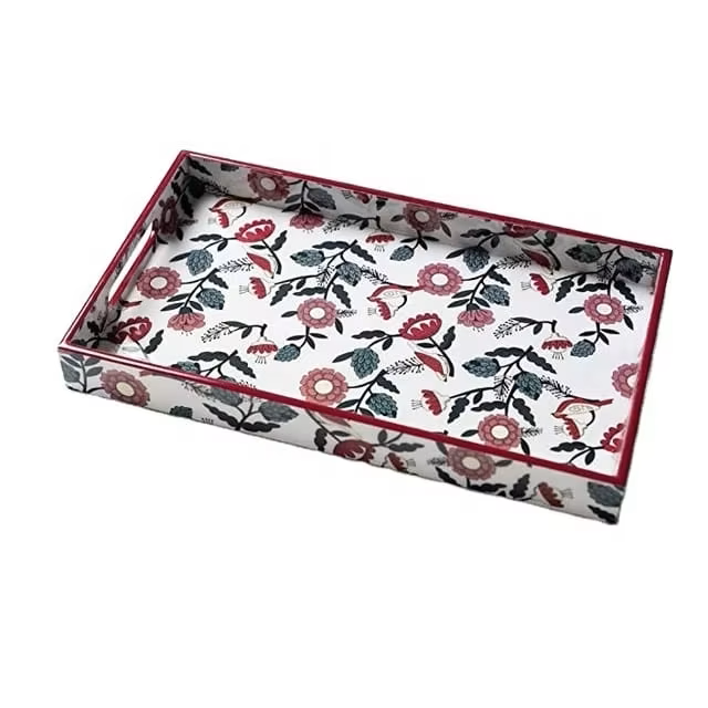 Enamel Print Wood Rectangle Serving Tray Indian Manufacturer Handmade Food Serving Trays Latest Rectangle Wood Serving Tray