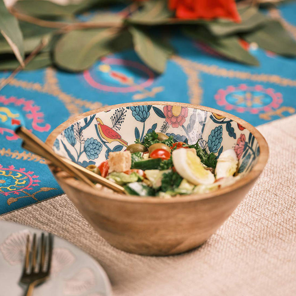 Name:Mango Wood Handmade Bowl With Enamel Print